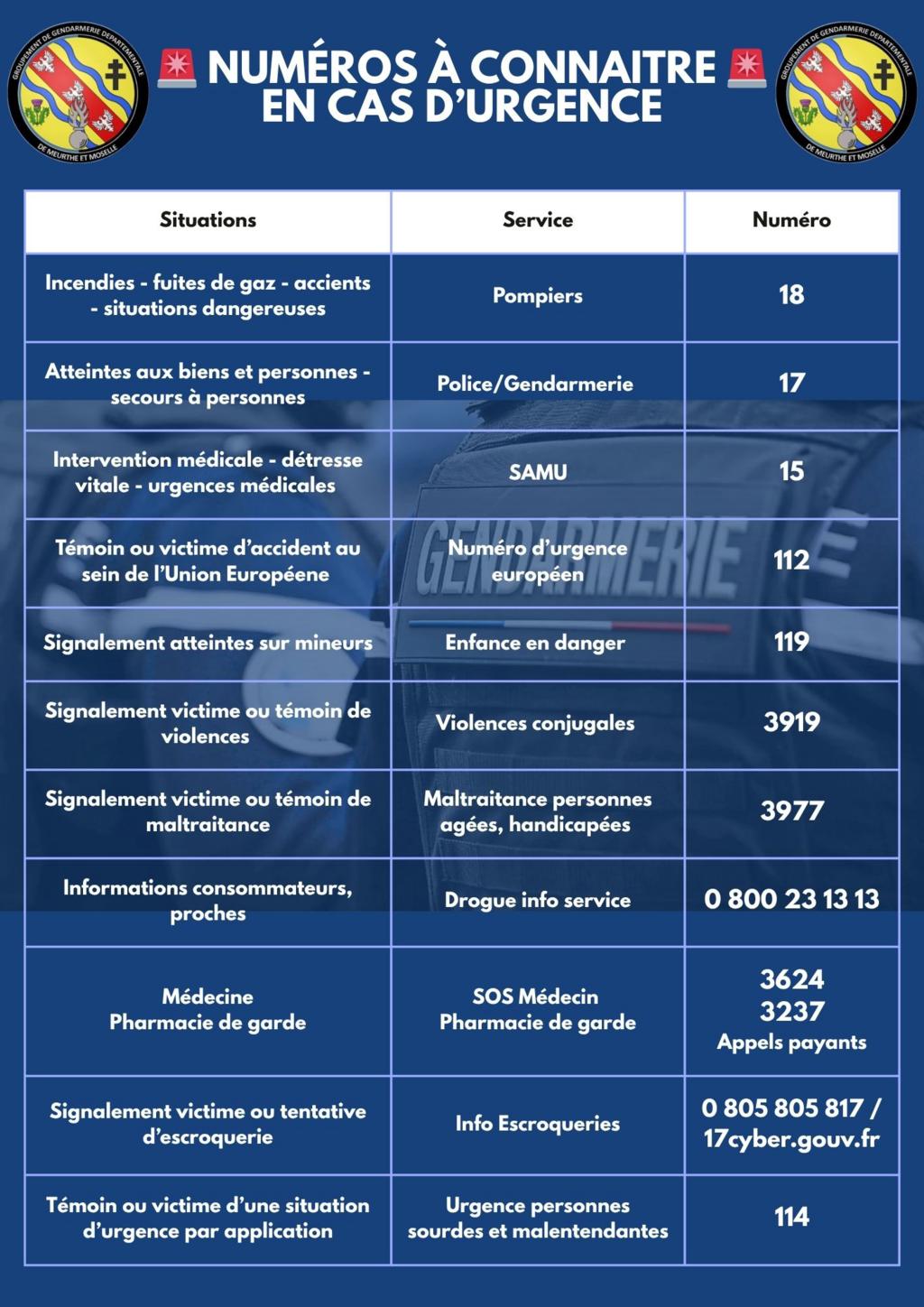 Aide mémoire des numéros importants